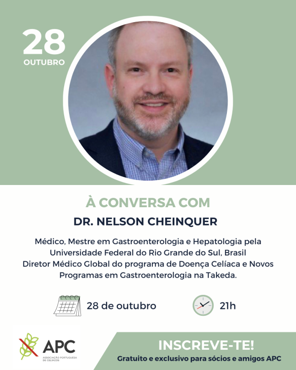 À Conversa com” é a rubrica digital da APC em que, informalmente, falamos sobre a doença celíaca e vários aspetos da dieta sem glúten. Em cada sessão, recebemos um convidado especialista, que partilha os seus conhecimentos e esclarece as questões dos participantes, oferecendo informação prática e útil.
