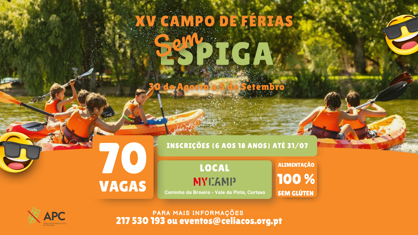 Em 2026, o Campo de Férias Sem Espiga regressa ao MyCamp, na Quinta da Broeira, Cartaxo, e irá realizar-se de 30 de agosto a 5 de setembro.