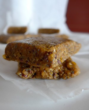 - Num liquidificador ou robô de cozinha, coloque as tâmaras, o alperce, as sementes de papoila, o coco ralado e a canela, e triture bem até obter uma massa homogénea.
