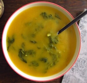 - Quando os legumes estiverem cozidos triture muito bem com a varinha mágica e coloque o agrião, deixando cozinhar em lume brando.